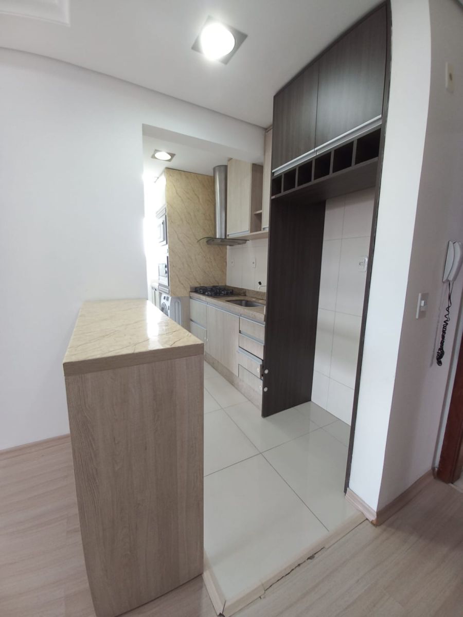 Este apartamento dispõe de 2 dormitórios, 1 banheiro social, sala acolhedora e 1 vaga de garagem. A cozinha americana integrada à sala proporciona um ambiente moderno e convidativo, ideal para receber amigos e familiares.